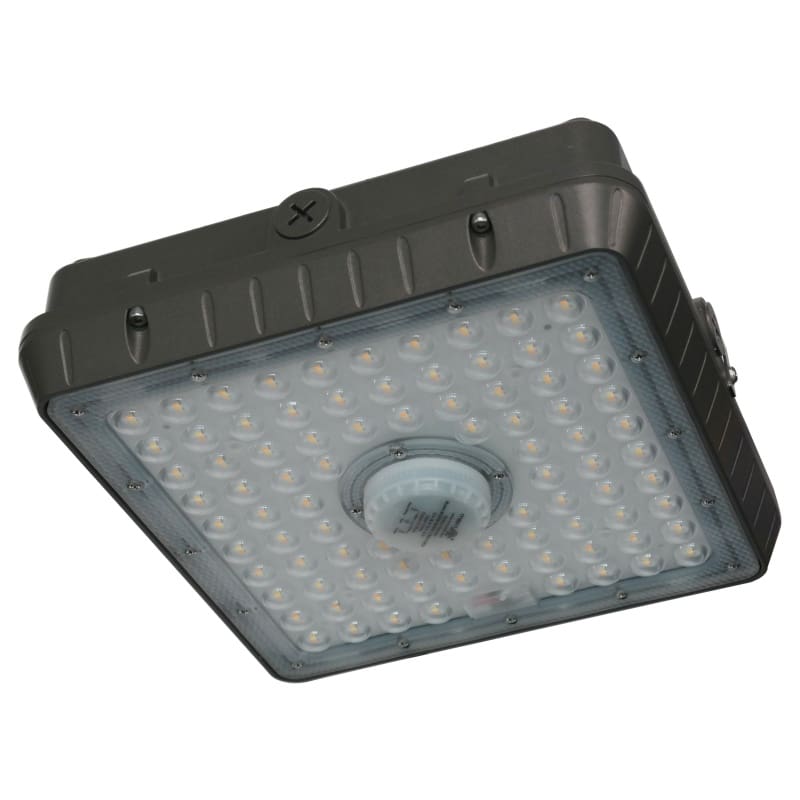 LED Canopy Light outdoor light fixture is DLC Premium listed, L70 rated at 149,000 hours, cULus listed for wet locations, and IP65 ingress protection rated. The die cast aluminum housing is protected with a durable bronze or white powder coat finish. Canopy Light is equipped with a seamless silicone gasket seal and IK08 rated impact resistant polycarbonate lens.
