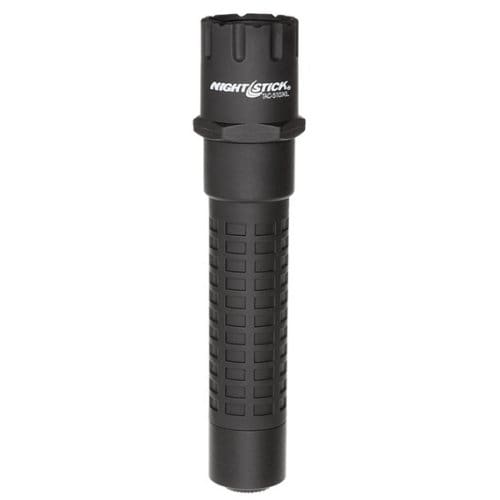 Flashlight TAC540XL. Utilizing a CREE LED rated at 800 lumens in combination with a deep parabolic reflector TAC540XL emits a bright beam capable of illuminating objects up to 205 meters (672 feet). Lower light output of 350 and 140 lumens supports extended battery life and higher contrast illumination of nearby objects. Multi-function textured tail mounted switch controls momentary, constant-on and emergency signal strobe. The 1-inch diameter handle allows attachment to most helmet mounts used by Fire and Utility Company personnel and the 1.25-inch flashlight head diameter accepts many 3rd party filters.