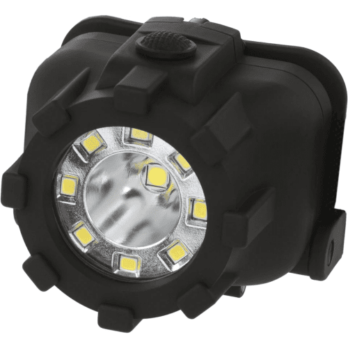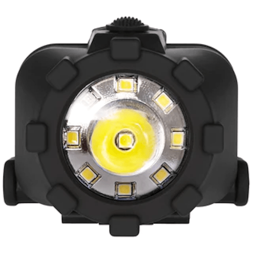NSP-4602B Dual Light Headlamp combines a collimated spotlight beam with a wide-angle close area floodlight. Rated at 30 lumens, the spotlight illuminates’ objects 19 meters distant. The wide-angle floodlight projects 15 lumens of light and provides homogenous general illumination. Both spotlight and floodlight can operate independently or in combination (dual light) providing highly effective illumination over a general area. The headlamp is powered by 3 AAA non-rechargeable (primary) batteries. NSP-4602B features a multi-position vertical ratcheted design head strap with a non-slip lining and a heavy- duty rubber strap for hard hat attachment.