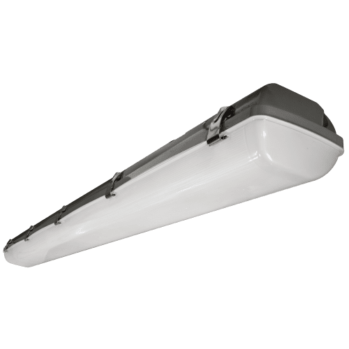 LED vapor tight fixture BVTPLED high efficiency luminaire provides long-life lighting with an L70 rating of 89,000 hours and 0-10 vDC dimming. Universal 120-277 AC voltage (50-60Hz) is standard. BVTPLED is backed by a 5-Year Warranty of all electronics and housing. DLC Premium approval meets more stringent efficacy, quality of light, and controllability requirements relative to DLC standard. Vapor tight LED light is available in 3500K (warm/neutral white), 4000K (neutral white) & 5000K (cool white) color temperatures. BVTPLED is manufactured with a polycarbonate housing and lens. Stainless steel mounting bracket and lens clips are standard